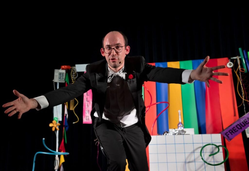 Professor Pom onderzoekt samen met het publiek en eenmusicus hoe geluid ontstaat en wanneer het muziek wordt. Een interactieve, speelse voorstelling vol natuurkundige experimenten en muzikale magie!
