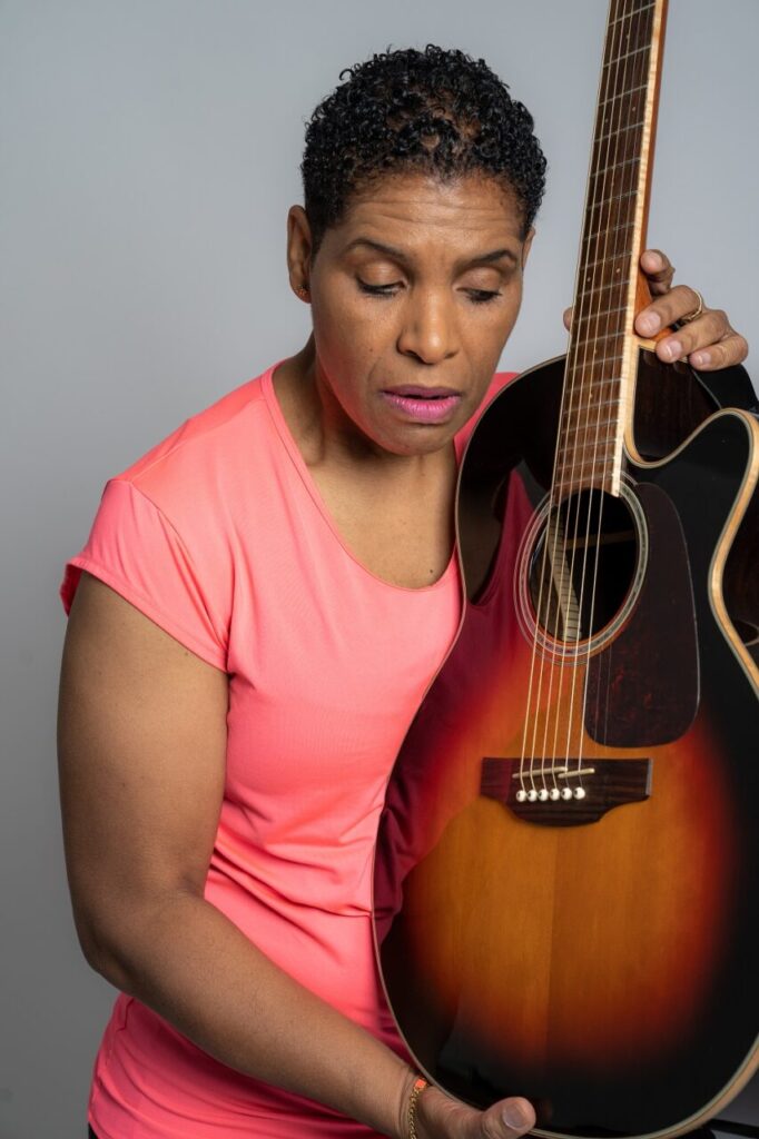 met het publiek, voor jong en oud. Ze neemt haar gitaar mee het land door. Op haar eigen wijze neemt zij de peuters mee op een muzikaal avontuur.